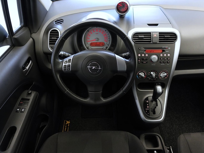 Nog een zeer mooie Opel Agila met 86pk sterke 1.2-16V benzine-injectiemotor, erg comfortabele automaat en zeer aantrekkelijk lage kilometerstand van slechts 68.000 km! Het betreft de luxere "Edition Style Pack"-uitvoering: airco, originele radio/CD/MP3-speler met stuurbediening, in hoogte verstelbare voorstoelen, in hoogte verstelbaar lederen stuur, mistlampen in voorbumper, verwarmbare buitenspiegels, afstandsbediende centrale deurvergrendeling, elektrisch bedienbare voorportierruiten, originele lichtmetalen velgen: 15-inch, metallic-lak "Steel Silver", trekhaak, etc.