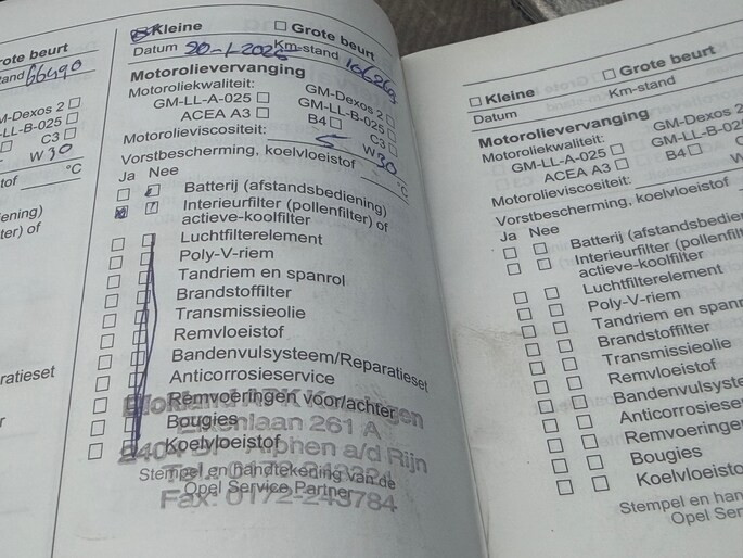 Onderhoudsboekjes: Aanwezig