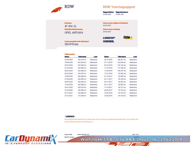 Kilometerstand gecontroleerd