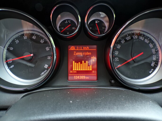 De electronic climate control zorgt voor een prettige binnentemperatuur. Voor de belangrijkste functies van het geluidssysteem hoeft u uw blik niet van de weg te halen. De audiobediening bevindt zich op het stuur. Het luxeniveau in deze Opel is niet alleen gericht op comfort, maar ook op uw veiligheid. Tal van sensoren helpen u om de omgeving in de gaten te houden. De automatisch inschakelbare verlichting zorgt dat automatisch de verlichting wordt ingeschakeld als het donker wordt, wat bijvoorbeeld in tunnels erg handig is. En de regensensor zet de ruitenwissers aan zonder dat u eraan hoeft te denken. De cruise control heeft een feilloos geheugen. Als u even vaart heeft geminderd, bent u na één klik weer op de oude snelheid. Natuurlijk behoren automatisch dimmende binnenspiegel, lederen stuur, boordcomputer en lederen versnellingspook ook tot de uitrusting van deze complete auto.