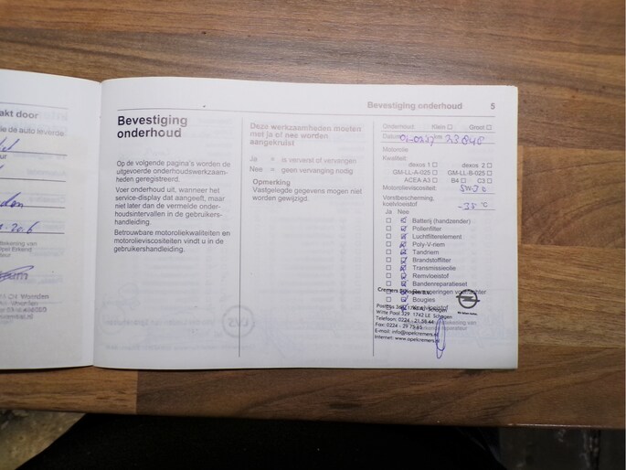 Onderhoudsboekjes: Aanwezig