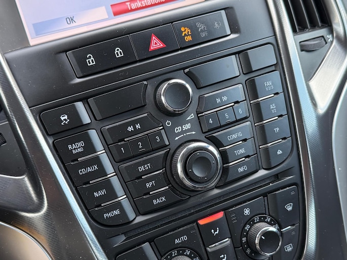 Laat u onderweg niet afleiden, de bediening van het audiosysteem en ook het navigatiesysteem gaat met knoppen op het stuur. Tot de standaard uitrusting van deze auto hoort ook electronic climate control. Ervaar het comfort van inparkeren met parkeersensoren. Deze auto laat zich moeiteloos in elk parkeervak manoeuvreren. Natuurlijk is een complete auto als deze ook voorzien van sensoren die de omgeving in de gaten houden. Deze Opel heeft niet alleen een automatisch inschakelbare verlichting aan boord, maar ook een regensensor. Maximumsnelheid? Even de cruise control instellen en u blijft perfect binnen de marges. Ook is de Opel uitgerust met: automatisch dimmende binnenspiegel, lederen stuur, boordcomputer en lederen versnellingspook.
