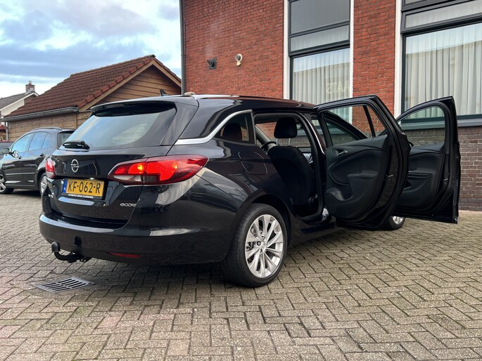 Locatie, motorconditie, storingen... via Connected Services krijgt u alle vitale info over de auto door. Ook handig bij pech! In deze Astra Sports Tourer vindt u niet alleen schakelaars op het stuur om het full map navigatiesysteem te bedienen en het audio-installatiesysteem met DAB-ontvangst, maar er is ook spraakbediening. De parkeersensoren vertellen precies hoe ver u kunt gaan. Hoe dichter op een obstakel, hoe sneller de piepjes. De elektronische systemen in deze Opel helpen u actief om comfortabeler te rijden. Een automatisch inschakelbare verlichting en een regensensor houden de omstandigheden onderweg in de gaten. Lekker koersen op een constante snelheid: daarvoor zorgt de cruise control. De uitrusting van deze auto is met airconditioning, automatisch dimmende binnenspiegel, lederen stuur, isofix-aansluiting, centrale deurvergrendeling met afstandsbediening en boordcomputer behoorlijk compleet.