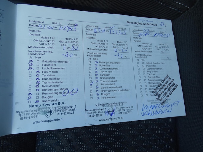 - Onderhoudsboekje (fysiek)