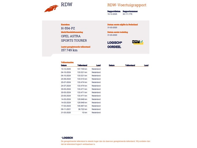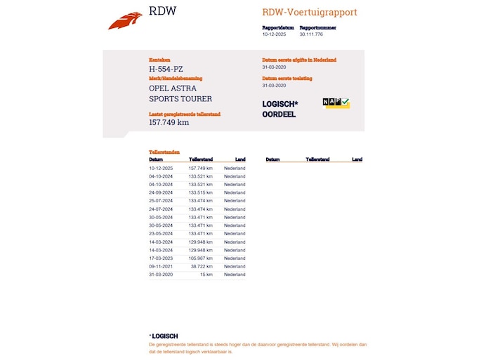 Kilometerstand gecontroleerd