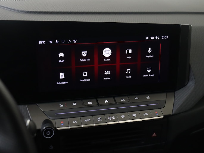 Het digitale dashboard is qua lay-out en zichtbaarheid superslim ingedeeld. Alle functies in één keer in beeld! Met de 360 graden camera kun je elk detail rond de auto zien, waardoor mogelijke schade door verkeerd inschatten van afstanden vermeden wordt. Met adaptive cruise control houdt de auto zelfstandig afstand tot jouw voorligger. Een veiligheidsverhogende optie waarmee je comfortabel onderweg bent. Je weet altijd hoe de auto eraan toe is dankzij Connected Services. Ook handig voor de garage en de wegenwacht. Even de app uitlezen en klaar! Het audio-installatiesysteem is gecombineerd met het navigatiesysteem en geeft je de keus om onderweg te luisteren wat je wilt. Verkeersinfo, je favoriete albums en radioprogramma's, podcasts, luisterboeken... zeg het maar. Deze auto heeft ook bluetooth aan boord. Naast de routeinformatie van het gekoppelde navigatiesysteem kan je muziek via het audio-installatiesysteem ook online beluisteren dankzij bluetooth. De uitrusting van deze Opel is met dashboard met spraakbediening, electronic climate control, DAB ontvangst, regensensor, keyless entry en automatisch dimmende binnenspiegel behoorlijk compleet.