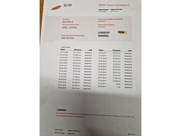 Kilometerstand gecontroleerd