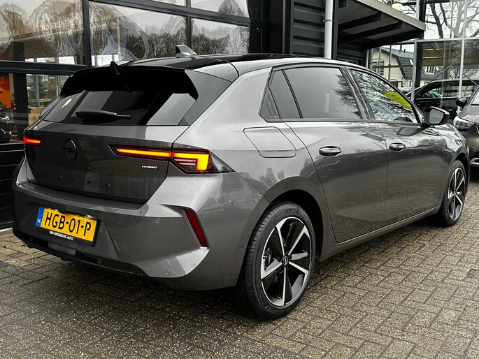 Een Opel is voor iedereen. Dat wil zeggen: iedereen die ondanks een vriendelijke prijs toch hoge eisen stelt aan kwaliteit, comfort en prestaties. Deze Opel Astra heeft in feite twee motoren: een voor benzine en een elektronische. Deze hybride oplossing biedt het beste van beide! De verwarmbare voorstoelen benadrukken nog maar eens dat we hier te maken hebben met een regelrechte verwenauto voor bestuurder en bijrijder. Goeie looks? Jazeker! Maar de sportstoelen zorgen ook voor een goed gesteunde en comfortabele zit. Daglicht valt vrij binnen door het elektrisch bediende glazen panoramadak. Natuurlijk kunt u zonder. Maar waarom? Lekker toch, zo'n verwarmd stuurwiel? Bij de rijke uitrusting horen ook 17 inch lichtmetalen velgen, LED-dagrijverlichting, extra getint glas en in delen neerklapbare achterbank. Overzicht, informatie en functionaliteit: dat biedt het digitale dashboard. De vier camera's die samen de 360 graden camera vormen, bieden u de mogelijkheid om obstakels in elke richting te zien. Adaptive cruise control houdt de ingestelde snelheid vast en houdt afstand tot het voertuig voor u. Connected Services zorgen ervoor dat de belangrijkste functies en data van de auto altijd en overal te checken zijn. Gewoon via de app op de smartphone. Het navigatiesysteem loodst u snel naar uw reisdoel. De uitrusting van deze auto is met electronic climate control, DAB ontvangst, regensensor, keyless entry en automatisch dimmende binnenspiegel behoorlijk compleet. In de Opel Astra heeft uw veiligheid en die van uw omgeving prioriteit. Een belangrijke bijdrage aan de veiligheid onderweg levert de verkeersbord-detectie. Ook is deze auto uitgerust met een systeem dat u waarschuwt wanneer u achter het stuur in slaap dreigt te vallen. Ook helpen het hill hold functie, autonoom remsysteem en bandenspanningcontrolesysteem, uw rit tot een veilige rit te maken. Bel nu voor een afspraak en overtuig uzelf.