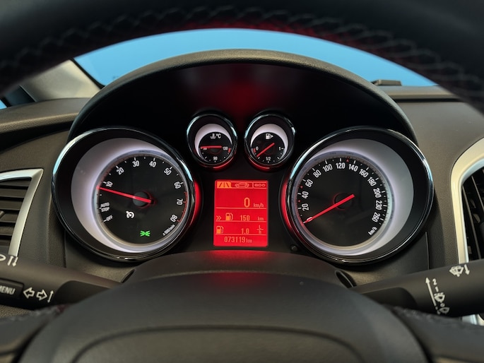 Op het stuur bevinden zich ook de schakelaars waarmee u de audio bedient. De elektronische systemen in deze Opel helpen u actief om comfortabeler te rijden. Een automatisch inschakelbare verlichting en een regensensor houden de omstandigheden onderweg in de gaten. Cruise control is aanwezig; prettig voor de lange einden. Het maakt niet uit hoe warm het buiten is, want met de airconditioning bepaalt u zelf de binnentemperatuur. Deze auto is voorzien van automatisch dimmende spiegels, boordcomputer en verstelbaar stuur.