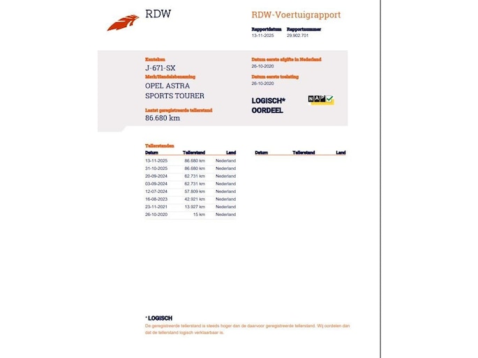 Kilometerstand gecontroleerd