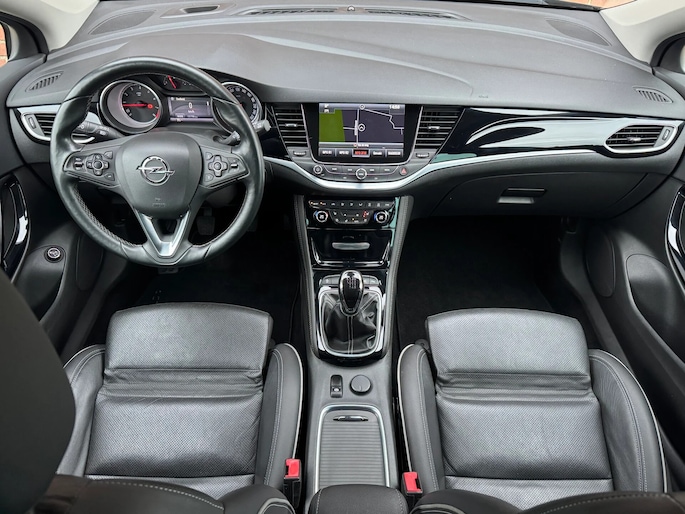 Zoals u mag verwachten van deze Opel Astra is hij uitgerust met een reeks aan actieve veiligheidssystemen. Wat deze auto ook kan, is lezen. Hij 'leest' voor u de verkeersborden tijdens de rit en attendeert u erop door ze op het dashboard te projecteren. Het Lane-keeping systeem registreert permanent of u binnen de lijnen van de rijstrook blijft; dwaalt u onbedoeld af, dan waarschuwt het systeem en corrigeert de koers. Op een helling houdt hill hold control de handrem vast totdat u weer gas geeft. De auto is ook uitgerust met dodehoekdetectie, autonoom remsysteem en bandenspanningcontrolesysteem.