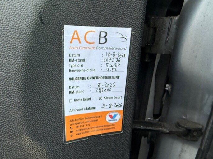 • Afleverbeurt conform onderhoudsschema met volle tank.