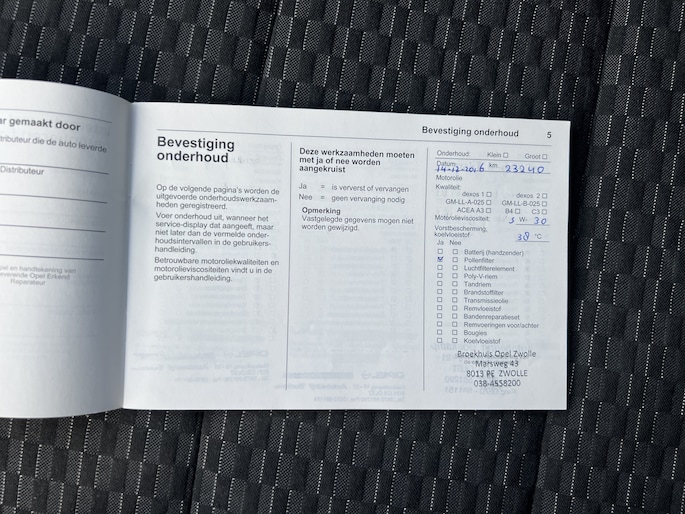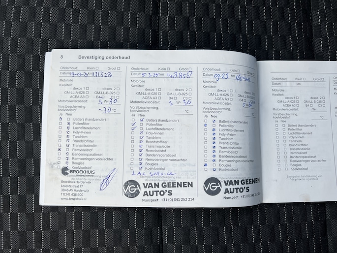 Onderhoudsboekjes: Aanwezig
