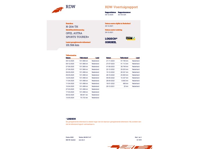 Kilometerstand gecontroleerd