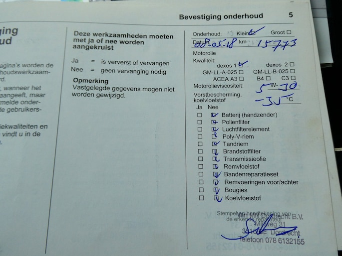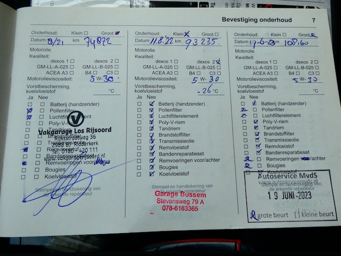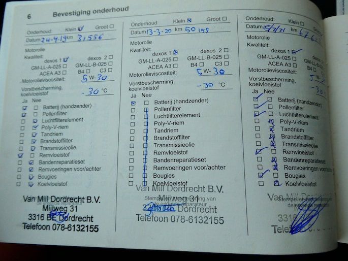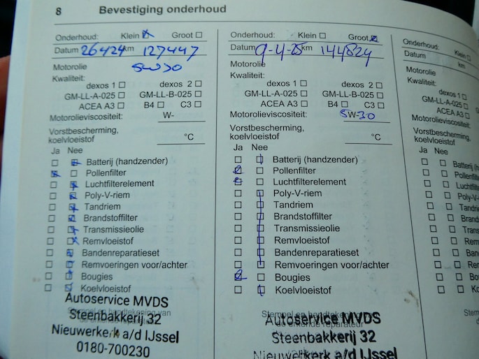 Onderhoudsboekjes: Aanwezig