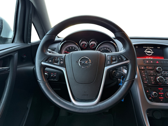 Als u regelmatig met een aanhanger of een fietsendrager op pad bent, is de afneembare trekhaak een praktische extra. Het navigatiesysteem en het audiosysteem bedient u met knoppen op het stuur. Parkeerplekken worden er niet ruimer op. Maar met de aanwezige parkeersensoren krijgt u deze Opel Astra Sports Tourer zonder problemen op z'n plaats. De elektronische systemen in deze Opel helpen u actief om comfortabeler te rijden. Een automatisch inschakelbare verlichting en een regensensor houden de omstandigheden onderweg in de gaten. Met de cruise control kunt u zorgen dat u op die rechte stukken toch uit beeld blijft bij de flitsers. Met airconditioning, automatisch dimmende binnenspiegel, lederen stuur en boordcomputer is deze Opel helemaal compleet.