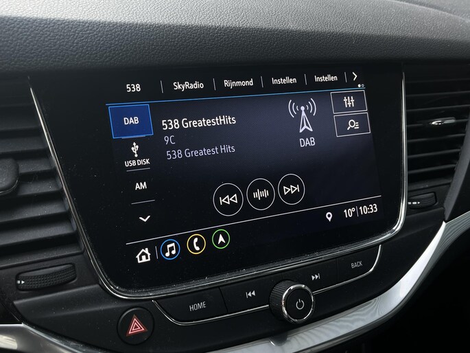 De achteruitrijcamera maakt inparkeren gemakkelijker dan ooit. Het audiosysteem met DAB-ontvangst en het navigatiesysteem bedient u veilig met knoppen op het stuurwiel of met gesproken commando's. Verdient de accu van uw smartphone ook aandacht? Opladen kan zonder snoeren, met de draadloze telefoonlader. In een auto als deze kunt u niet zonder electronic climate control, zodat de temperatuur altijd goed is. Het hoort bij een intelligente auto als deze dat hij zelf in staat is om zijn omgeving in de gaten te houden. Dat doet deze Opel met een automatisch inschakelbare verlichting en een regensensor. Wat u ook in deze auto kunt vinden zijn cruise control, keyless entry, automatisch dimmende binnenspiegel, lederen stuur, isofix-aansluiting en boordcomputer.