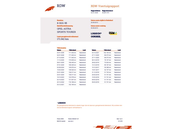 Kilometerstand gecontroleerd