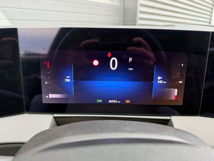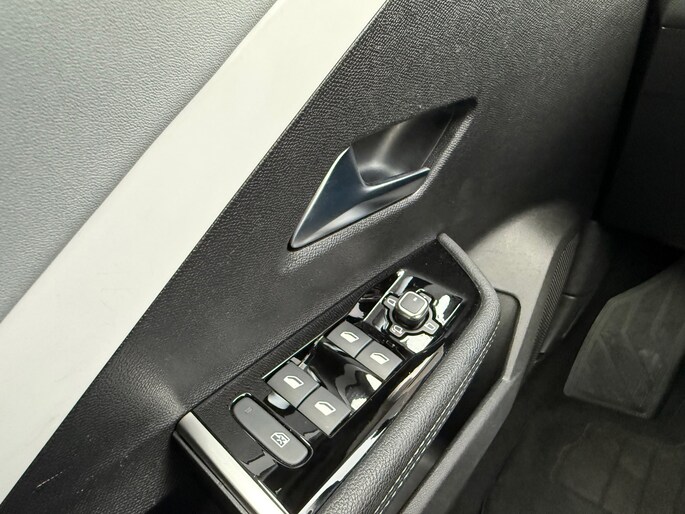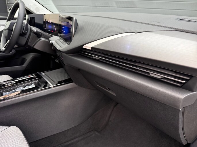 De auto is uitgerust met het innovatieve Pure Panel, een volledig digitaal instrumentarium en infotainmentscherm achter één doorlopende glasplaat, wat het interieur een strakke, moderne uitstraling geeft.