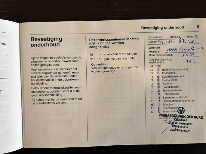 Onderhoudsboekjes: Aanwezig