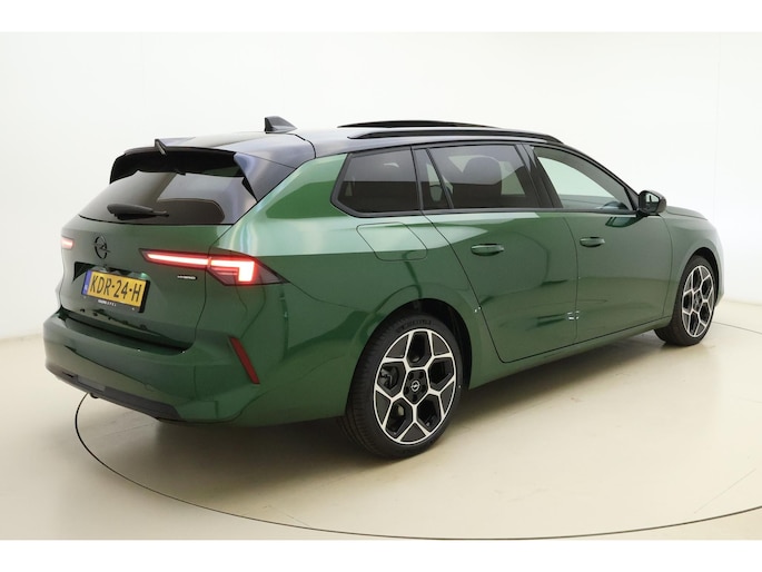 Opel staat bekend als merk dat innovaties breed in de markt zet. Ook hier zien we het Opel-motto 'De toekomst is voor iedereen' in praktijk gebracht. Brandstofmotor, elektromotor? Deze hybride Opel Astra Sports Tourer combineert ze. En dat is te merken bij de pomp, want die ziet u voortaan minder vaak. De verwarmbare voorstoelen inclusief massagefunctie benadrukken nog maar eens dat we hier te maken hebben met een regelrechte verwenauto. De sportstoelen houden u en uw bijrijder goed op z'n plek tijdens het accelereren en bij het nemen van scherpe bochten. Laat de zon maar schijnen door het elektrisch bediende glazen panoramadak. De achterklep opent automatisch met een druk op de knop. Handig als u met volle handen staat. Koude handen? Da's voorbij met het verwarmd stuurwiel. Pak aan! Opvallend is de geavanceerde matrix LED-verlichting met daglichtkwaliteit. De koplampen dimmen automatisch het deel van de lichtstraal waar voor- of tegenliggers in rijden. De overige segmenten blijven aan en verlichten de weg maximaal. Tot de uitrusting van deze Opel behoren ook 18 inch lichtmetalen velgen, geluidsisolerende ramen, in delen neerklapbare achterbank, LED-achterlichten en verstelbare lendensteunen.