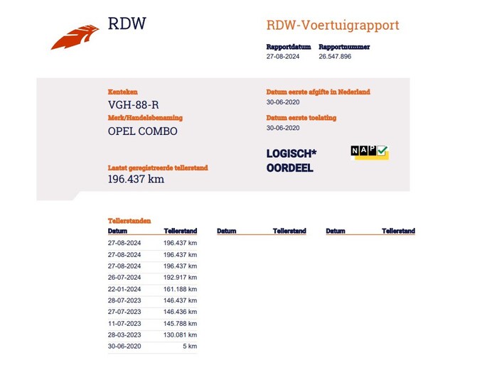 Kilometerstand gecontroleerd