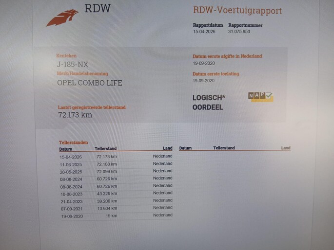Kilometerstand gecontroleerd