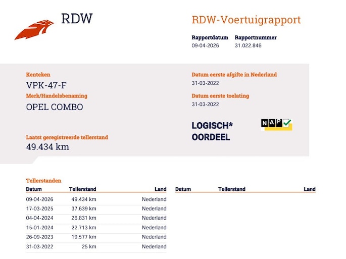 Kilometerstand gecontroleerd