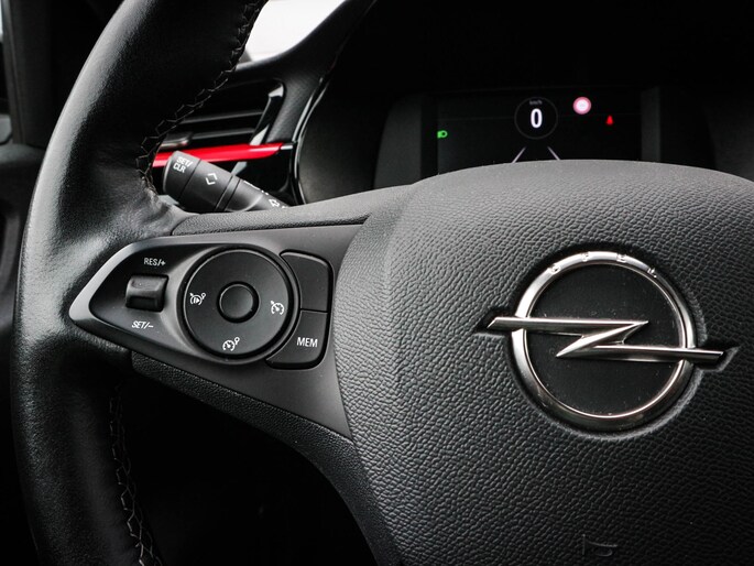 Elegante lijnen en een relatief groot glasoppervlak geven deze Opel Corsa zijn stijlvolle uitstraling. De ledkoplampen benadrukken dat nog eens, ze schijnen krachtig in het donker. Met zijn uitgekiende onderstel en slimme veiligheidssystemen biedt deze auto u te allen tijde veilig en comfortabel rijplezier. De aandrijving van deze Opel wordt verzorgd door een driecilinder benzinemotor en een handgeschakelde zesversnellingsbak. De sportstoelen zien er niet alleen prachtig uit, maar zijn ook functioneel, zoals u kilometer na kilometer zult merken. De koplampen zijn voorzien van matrix LED-verlichting waarmee u aanzienlijk verder kan kijken in het donker. Het systeem past zelf de lichtstraal aan op het moment tegenliggers verblind kunnen worden. Bij de uitrusting van deze Opel horen onder meer 16 inch lichtmetalen velgen, in delen neerklapbare achterbank, LED-achterlichten en snelheidsafhankelijke stuurbekrachtiging.