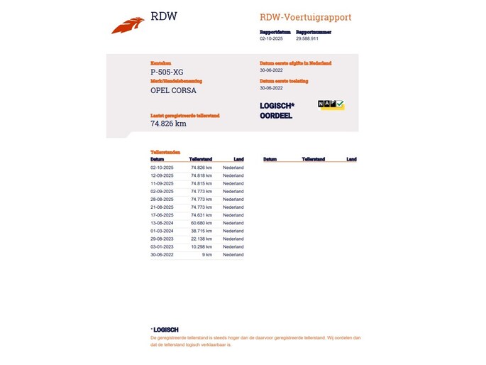 Kilometerstand gecontroleerd