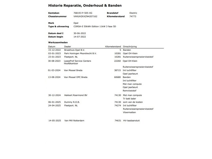 Tijdens het rijklaar maken van deze auto zijn de volgende handelingen verricht: