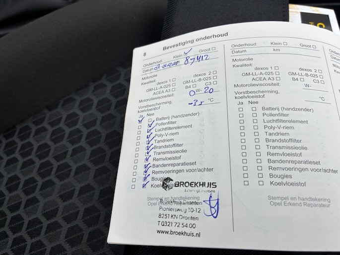 Onderhoudsboekjes: Aanwezig