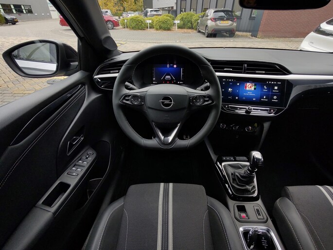 Een cockpit, een informatiecentrum... Wat is de cabine eigenlijk niet? Dankzij het digitale dashboard bent u van alles op de hoogte. Afstand schatten bij het achteruitrijden? Niet nodig. U weet het precies, dankzij de achteruitrijcamera. Met de DAB-ontvanger luistert u naar glasheldere digitale radio. De auto neemt u werk uit handen doordat hij zelf veel in de gaten houdt. Een regensensor en een automatisch inschakelbare verlichting nemen waar wanneer de ruitenwissers en het licht aan moeten. De aanwezige cruise control scheelt lekker in brandstofkosten. En ook bij de flitspaal. Ook is de Opel uitgerust met: airconditioning, automatisch dimmende binnenspiegel, lederen stuur, centrale deurvergrendeling met afstandsbediening en boordcomputer.