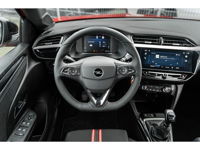 Handig en veilig: Connected Services. Alle vitale functies en data van de auto checkt u via de app op uw smartphone. Verwende oren worden blij van het topkwaliteit audiosysteem met DAB-radio. Boem is ho? Niet bij deze Opel Corsa. De piepjes van de parkeersensoren waarschuwen u op tijd voor obstakels. Het luxeniveau in deze Opel is niet alleen gericht op comfort, maar ook op uw veiligheid. Tal van sensoren helpen u om de omgeving in de gaten te houden. De automatisch inschakelbare verlichting zorgt dat automatisch de verlichting wordt ingeschakeld als het donker wordt, wat bijvoorbeeld in tunnels erg handig is. En de regensensor zet de ruitenwissers aan zonder dat u eraan hoeft te denken. Stel de cruise control in op de gewenste snelheid en u rijdt comfortabel en zuinig. Ook is de Opel uitgerust met: airconditioning, automatisch dimmende binnenspiegel, centrale deurvergrendeling met afstandsbediening en boordcomputer.
