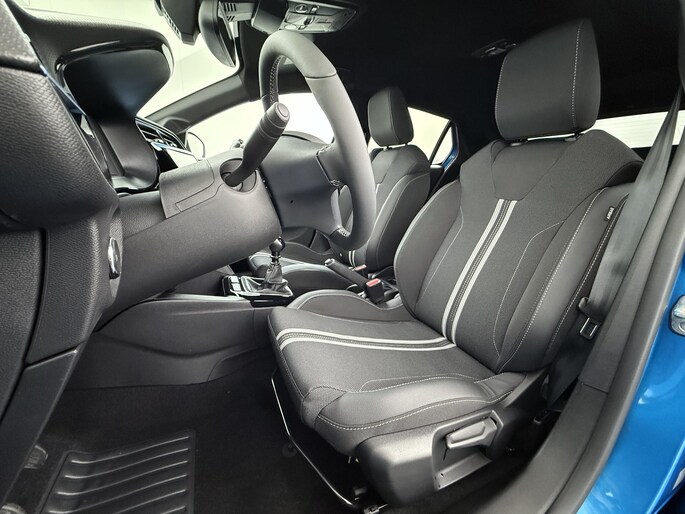 Interieurkleur: Stoffen bekleding ''banda'' in jet black met witte accenten