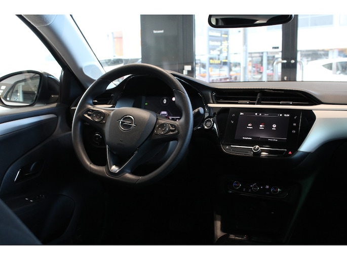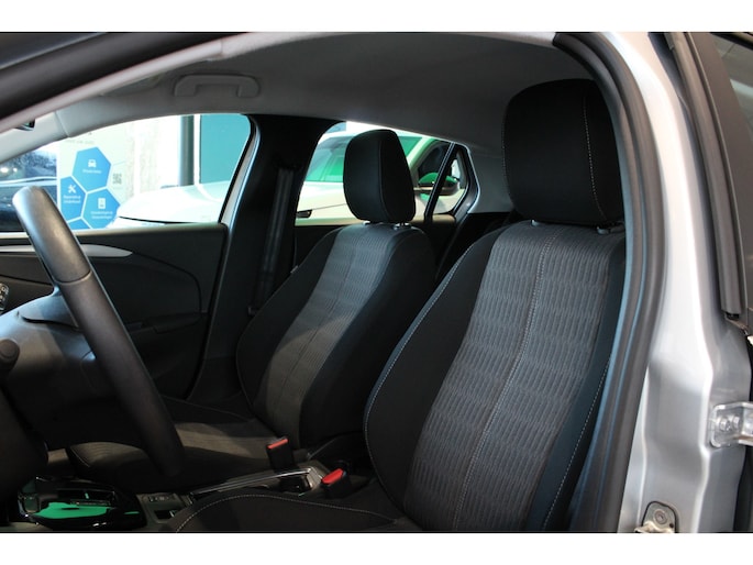 Elektrisch rijden is ontspannen rijden. Achter het stuur van deze Opel Corsa-e kunt u zich in alle rust concentreren op de weg. Het rijden met deze auto is werkelijk grenzeloos, want de actieradius is groot genoeg voor allerlei veelvoorkomende ritten en de tijd om de accu's op te laden is prima in te passen in uw dagelijkse bezigheden. De uitmonstering van deze auto wordt gecompleteerd door onder meer in delen neerklapbare achterbank en snelheidsafhankelijke stuurbekrachtiging. Pas de interface van uw cockpit moeiteloos aan. Het is mogelijk door het digitale dashboard in deze auto. De speciale app verbindt met Connected Services, die de status van vitale functies bijhoudt en waarschuwt als u bijvoorbeeld moet tanken, de bandenspanning moet controleren of olie moet bijvullen. Niet alleen is er aan boord DAB-radio beschikbaar, maar het audiosysteem zorgt ook nog eens voor fantastische weergave. Met de electronic climate control selecteert u de gewenste temperatuur. Het systeem doet de rest. Om de veiligheid onderweg te verhogen, heeft deze Opel zowel een automatisch inschakelbare verlichting als een regensensor aan boord, zodat hij zelf de verlichting en de ruitenwissers kan inschakelen. Natuurlijk behoren cruise control, automatisch dimmende binnenspiegel, centrale deurvergrendeling met afstandsbediening en boordcomputer ook tot de uitrusting van deze complete auto. Elektronische veiligheidsvoorzieningen helpen u onderweg om de situatie op de weg te beoordelen. Deze systemen waarschuwen u als er een riskante situatie ontstaat, en kunnen in bepaalde gevallen ook zelf ingrijpen. Dat de auto steeds meer taken van de bestuurder overneemt, merkt u bijvoorbeeld aan het systeem voor verkeersbord-detectie in deze auto. Het Lane-keeping systeem garandeert dat u zich niet onverhoeds buiten de lijnen van de rijstrook begeeft. Het forward collision warning-systeem is constant alert en detecteert via sensor de afstand tot voorliggers. Wordt die te klein, dan volgt een automatische waarschuwing. De auto is ook uitgerust met hill hold functie, vermoeidheidsherkenning, autonoom remsysteem en bandenspanningcontrolesysteem. Wat kunnen we verder nog zeggen? Tijd voor een elektrische proefrit! Neem contact op en maak meteen een afspraak.