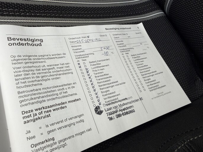 Onderhoudsboekjes: Aanwezig