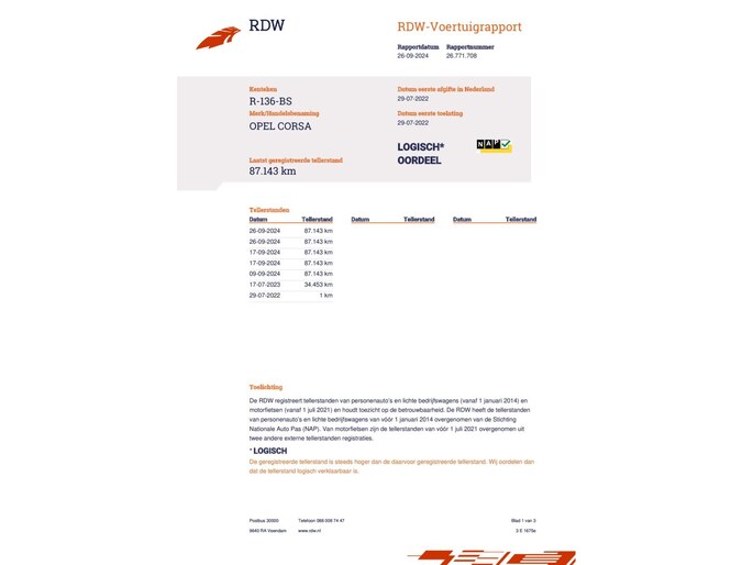 Kilometerstand gecontroleerd
