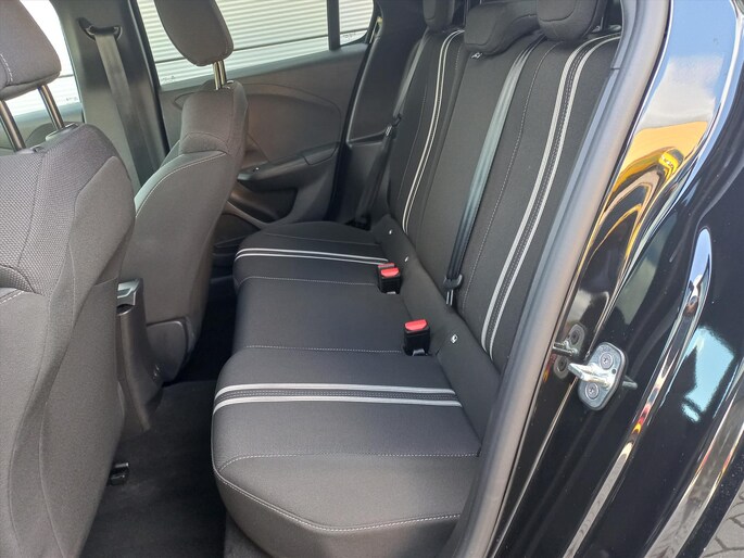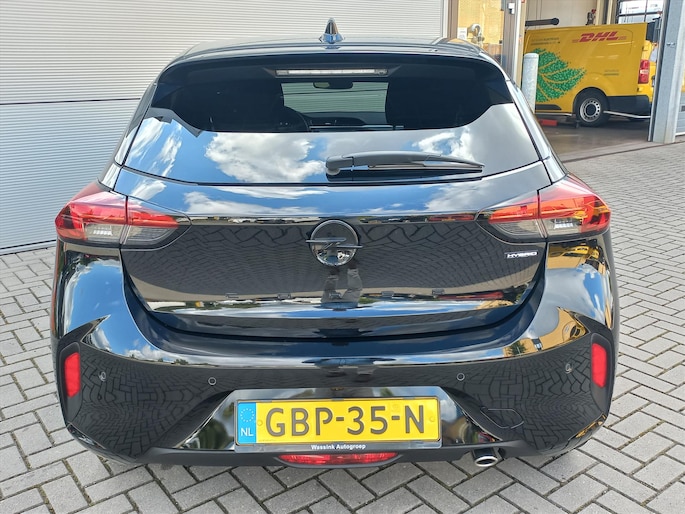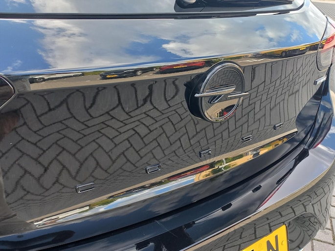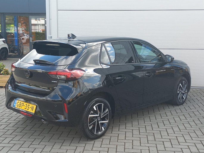 Deze originele Nederlandse zwart metallic Opel Corsa eDCT 6-traps AUTOMAAT met de 1.2 Turbo Hybride motor met 100pk in de GS uitvoering met het INFOTAINMENT PAKKET is o.a. voorzien van een volautomatische airconditioning, FULL MAP NAVIGATIE, bluetooth connectiviteit, draadloos Apple Carplay/Android Auto, DAB+ radio, 16" LM-velgen, cruise control en speedlimiter, achteruitrij-camera, parkeersensoren voor en achter, DODE HOEK detectie, verkeersbord herkenning, vermoeidheidsassistentie, elektronisch handrem, LED koplampen, LED dagrijverlichting, LED achterlichten, regen- en lichtsensor, automatisch dimmende binnenspiegel, elektrische ramen voor en achter, buitenspiegels elektrisch verstelbaar/verwarmbaar/inklapbaar, key less entry en key less start, bestuurdersstoel in hoogte verstelbaar, bekleding leer/stof, lederen stuurwiel in hoogte en diepte verstelbaar, middenarmsteun, deelbare achterbank met ISOFIX bevestigingspunten, Sport-rijmodus, sportieve voor- en achterbumper, achterklepspoiler, boordcomputer en een bandenspanningscontrole systeem.