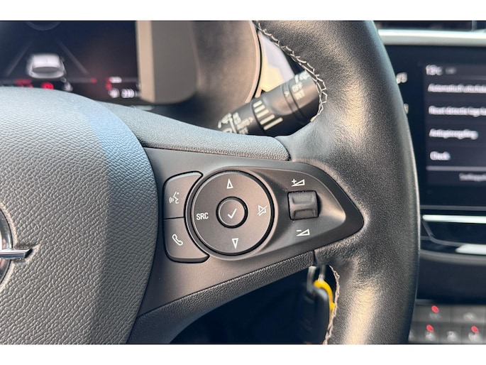 Zoals je mag verwachten van deze Opel Corsa is hij uitgerust met een reeks aan actieve veiligheidssystemen. De camera van de verkeersborddetectie herkent verschillende soorten verkeersborden en toont deze op het dashboard. Het Lane-keeping systeem zorgt voor een automatisch constante positie binnen de rijstrook. Afdwalen is uitgesloten. Forward collision warning waarschuwt bij een dreigende aanrijding met een voorligger. Met voorzieningen als hill hold functie, vermoeidheidsherkenning, autonoom remsysteem en bandenspanningcontrolesysteem, ben je altijd veilig onderweg.