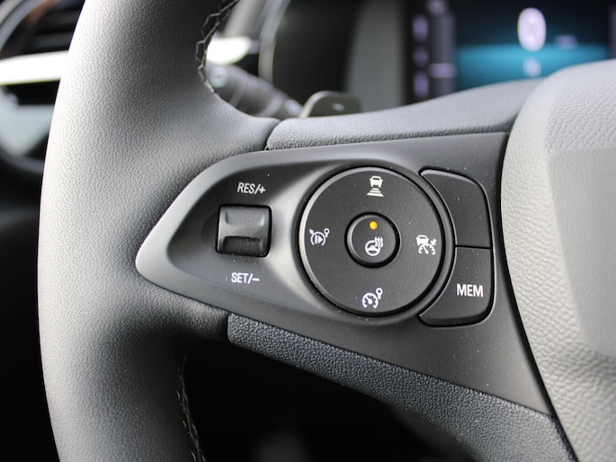 Tijdens de rit wordt u als bestuurder ondersteund door verschillende systemen die de weg en uw omgeving in de gaten houden. Een belangrijke bijdrage aan de veiligheid onderweg levert de verkeersbord-detectie in deze Opel. Voorzien van het Lane-keeping systeem. Ofwel: blijf automatisch in je baan. In een noodsituatie waarschuwt forward collision warning bij een dreigende aanrijding met een voorligger. U bent mede dankzij dodehoekdetectie, hill hold functie, vermoeidheidsherkenning, autonoom remsysteem en bandenspanningcontrolesysteem steeds veilig onderweg.