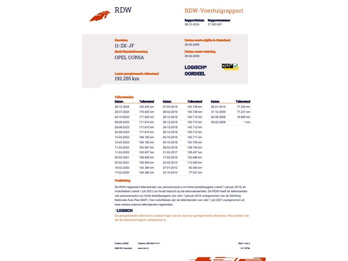 Kilometerstand gecontroleerd