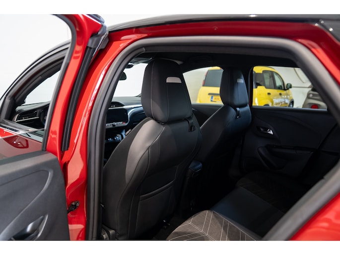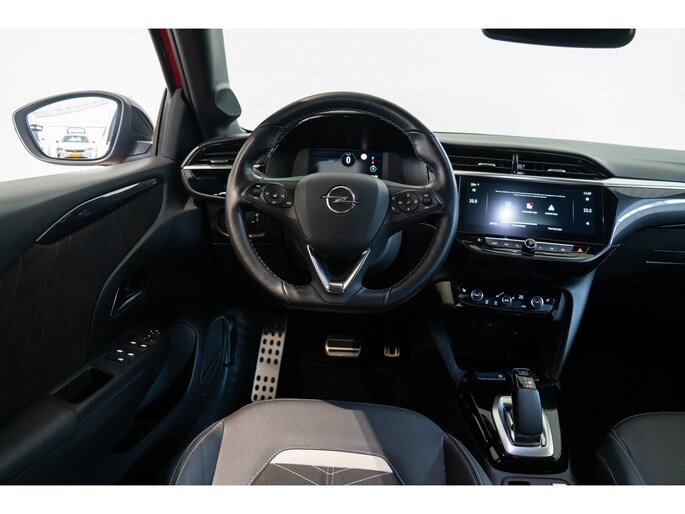 Vooruitstrevende technologie toegepast voor een breed publiek. Zo kun je Opel toch wel omschrijven. 'De toekomst is voor iedereen', zeggen ze zelf. Nooit meer naar de pomp! De elektromotor opladen en rijden maar! Behaaglijk onderweg zijn? Als bestuurder geniet u van de verwarmbare voorstoelen met massagefunctie. Net als uw bijrijder! Pittig rijden wordt nog comfortabeler dankzij de fraaie sportstoelen. Bij deze Opel Corsa-e is aan alles gedacht, tot en met een verwarmd stuurwiel aan toe. De koplampen met matrix LED-verlichting zijn het hoogst haalbare op het gebied van autoverlichting. Ook 17 inch lichtmetalen velgen, extra getint glas, in delen neerklapbare achterbank, LED-achterlichten en snelheidsafhankelijke stuurbekrachtiging horen tot de voorzieningen op deze auto. Alle benodigde informatie helder in beeld: het digitale dashboard is een geweldige rijhulp. Met Connected Services wordt iedere rit nóg veiliger. In deze auto wordt u elke rit opnieuw bijgestaan door een gebruiksvriendelijk full map navigatiesysteem, terwijl u luistert naar het glasheldere geluid van het audiosysteem met DAB-radio. U verwacht natuurlijk electronic climate control in deze auto, en die is er dan ook. Soms heeft u meer parkeerruimte dan u denkt. Maar soms ook niet. De parkeersensoren vertellen precies hoeveel. En dan is deze auto ook nog eens voorzien van regensensor, cruise control, automatisch dimmende binnenspiegel, centrale deurvergrendeling met afstandsbediening en boordcomputer. Deze auto is voorzien van innovatieve systemen die u onderweg begeleiden en beschermen. Verkeersborddetectie herkent tijdelijke en permanente verkeersborden langs en boven de weg. Met het Lane-keeping systeem komt u nooit per ongeluk buiten de rijstrook. Mindert een voorligger onverwachts te veel vaart, dan komt de forward collision warning in actie en waarschuwt meteen. Dankzij veiligheidsvoorzieningen als hill hold functie, vermoeidheidsherkenning, autonoom remsysteem en bandenspanningcontrolesysteem, bent u steeds veilig onderweg. U bent geïnteresseerd om elektrisch te rijden? Neem dan nu contact met ons op.