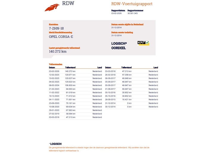 Kilometerstand gecontroleerd
