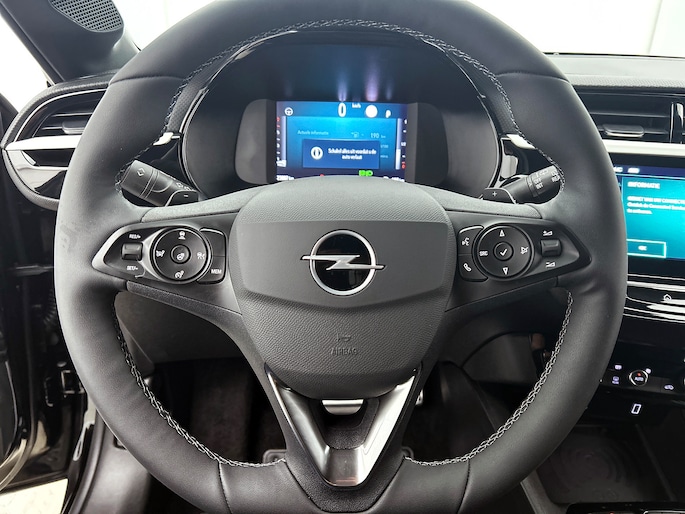 Het digitale dashboard is een perfecte bijrijder. Alles benodigde informatie is permanent zichtbaar of opvraagbaar. Ongelukken of parkeerschade? Dat gebeurt u niet meer, met de achteruitrijcamera. Uw smartphone wordt een dashboard, met alle functies in beeld. Dankzij Connected Services en de speciale app. Uw veiligheid op de weg wordt verhoogd door het audio-installatiesysteem met DAB-ontvangst en het full map navigatiesysteem te bedienen vanaf het stuur of met spraakbediening, zodat uw handen veilig op het stuur blijven en uw ogen gericht zijn op de weg. Zoals van een eigentijdse auto verwacht mag worden, is deze Opel Corsa voorzien van een draadloze oplaadmogelijkheid voor telefoons. Ook is de Opel uitgerust met: automatische airconditioning, regensensor, cruise control, keyless entry, automatisch dimmende binnenspiegel en isofix-aansluiting.