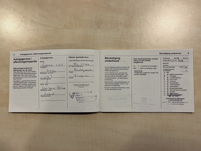 Onderhoudsboekjes: Aanwezig