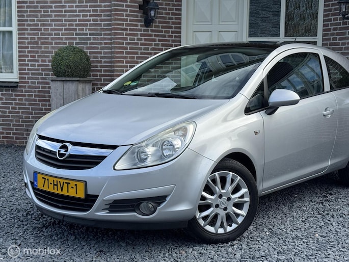 Leuke Opel Corsa 1.4 met panoramadak, airco, cruise control en lichtmetalen velgen. De auto rijdt en schakelt goed en is goed onderhouden, en helemaal compleet met Onderhoudsboekje, 2 sleutels en logisch NAP