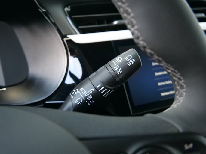 Hoeveel ruimte heeft u nog bij het inparkeren? De achteruitrijcamera brengt helder in beeld wat zich achter de auto bevindt en geeft een geluidssignaal. De auto neemt u werk uit handen doordat hij zelf veel in de gaten houdt. Een regensensor en een automatisch inschakelbare verlichting nemen waar wanneer de ruitenwissers en het licht aan moeten. Met de cruise control kunt u zorgen dat u op die rechte stukken toch uit beeld blijft bij de flitsers. Deze auto heeft airconditioning aan boord. En dan is deze auto ook nog eens voorzien van DAB ontvangst, automatisch dimmende binnenspiegel, lederen stuur, isofix-aansluiting, centrale deurvergrendeling met afstandsbediening en boordcomputer.
