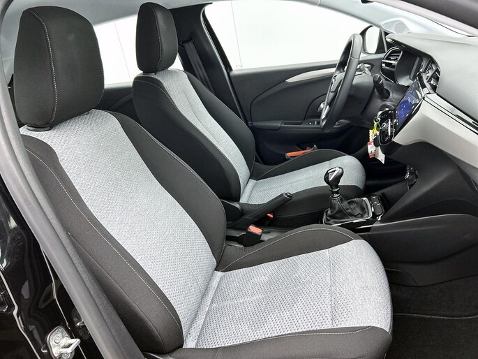 Geavanceerde technische systemen houden tijdens elke rit het verkeer in de gaten en reageren op potentieel gevaarlijke situaties. Dat de auto steeds meer taken van de bestuurder overneemt, merkt u bijvoorbeeld aan het systeem voor verkeersbord-detectie in deze Opel. Deze Opel Corsa is ook behulpzaam als het gaat om een rechte koers. Het Lane-keeping systeem signaleert en corrigeert als u onbedoeld de rijstrooklijnen dreigt te overschrijden. De forward collision warning geeft een botswaarschuwing als een aanrijding dreigt met een voorligger. De auto is ook uitgerust met dodehoekdetectie, hill hold functie, vermoeidheidsherkenning en bandenspanningcontrolesysteem.