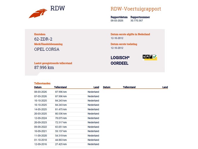Kilometerstand gecontroleerd